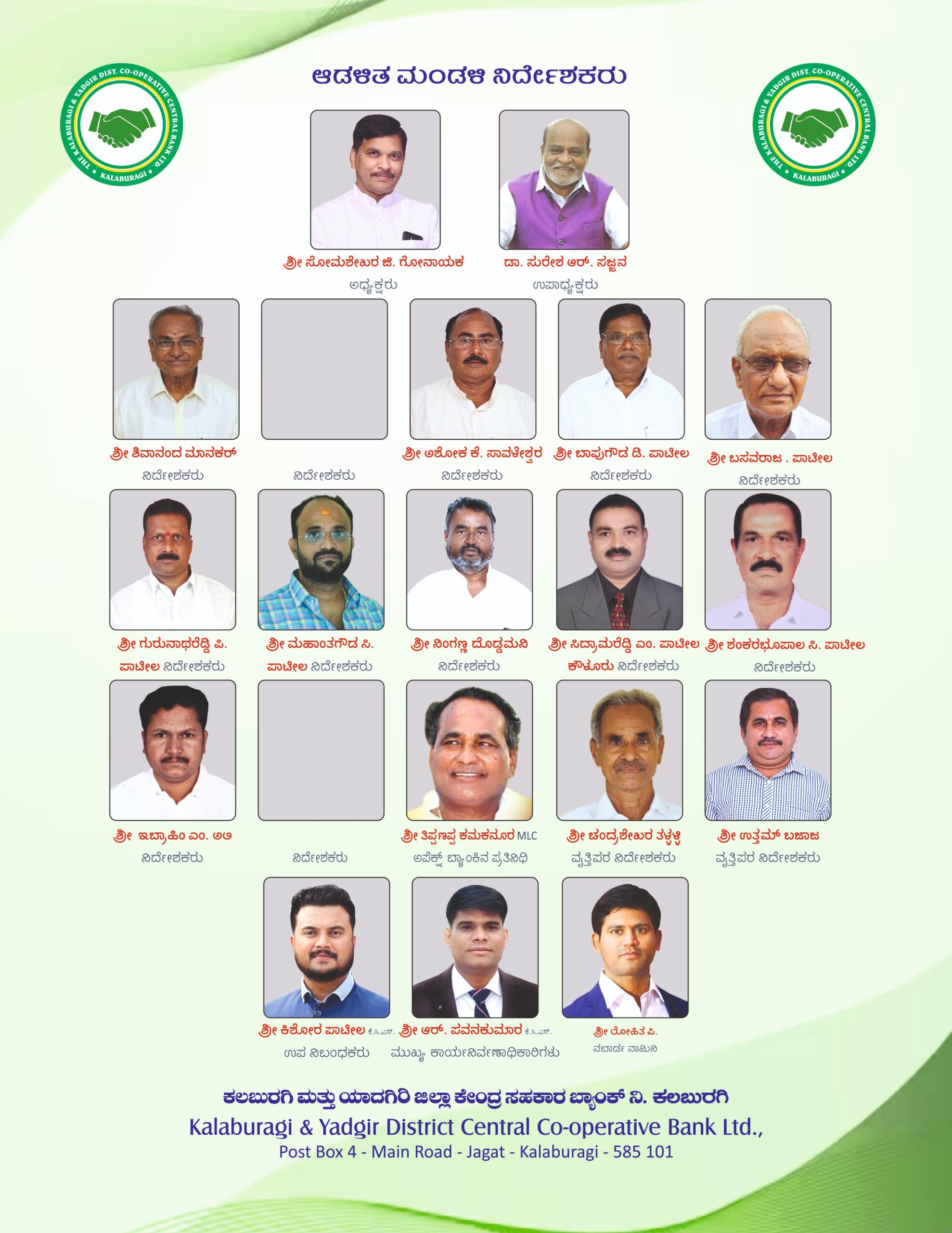 Shri Ramachandra Patil, the Founder President, established DCC Bank Gulbarga with the vision of empowering cooperative banking in the region. His visionary leadership has played a pivotal role in promoting financial inclusion and supporting the economic growth of the community. His dedication continues to guide the bank’s success and inspire its ongoing commitment to cooperative principles.